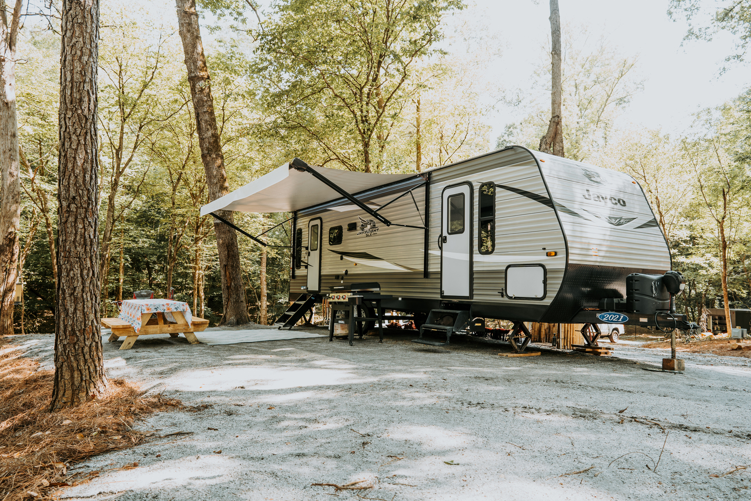 A sewer collar must always be used. Skirting on RVs must be professionally fabricated, color-matched, and installed in an aesthetically pleasing way. Plastic sheeting, unfinished plywood, tarps, or other makeshift skirting items are not permissible.