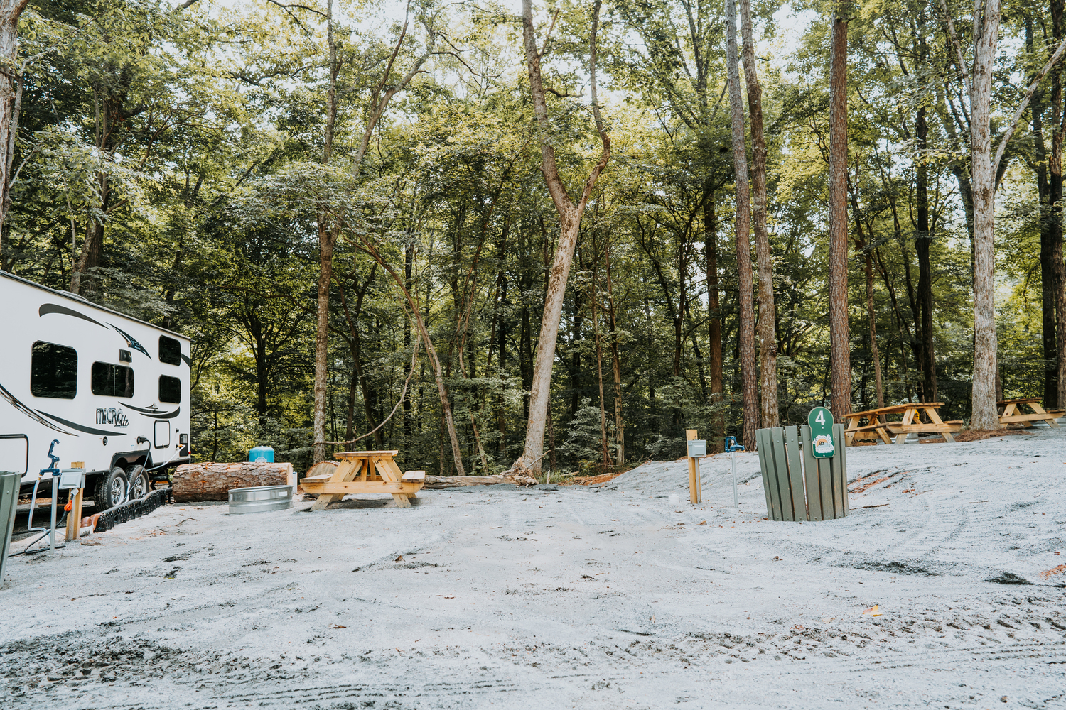 Trash cans are provided at each site for your convenience during your stay. Please tie up trash in bags before placing in cans. Please dispose of any bags of trash in the large dumpster by the main road daily to avoid issues prior to leaving the Campground All sites must be kept tidy and nothing should be left behind.