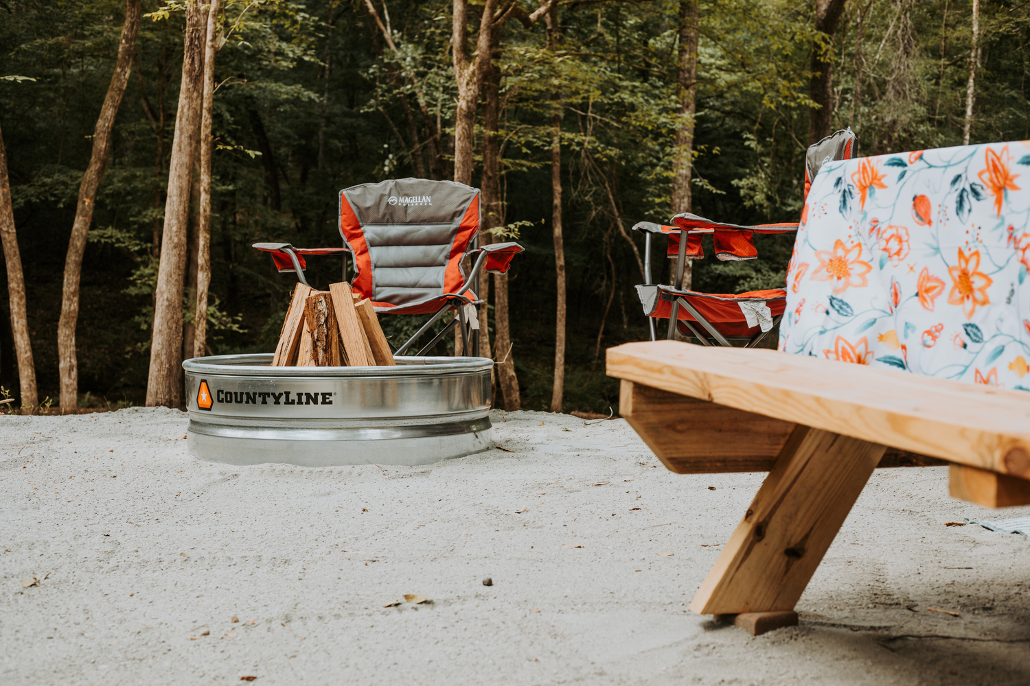 Campfires are permitted in fire rings only. Fire rings must be returned to the original location before leaving campground. Gathering of dead branches laying on the ground is permitted. Never leave campfire unattended Do not discard ashes in trash or on grass. Burning trash in the fire ring is strictly prohibited. Extinguish fires before leaving unattended.